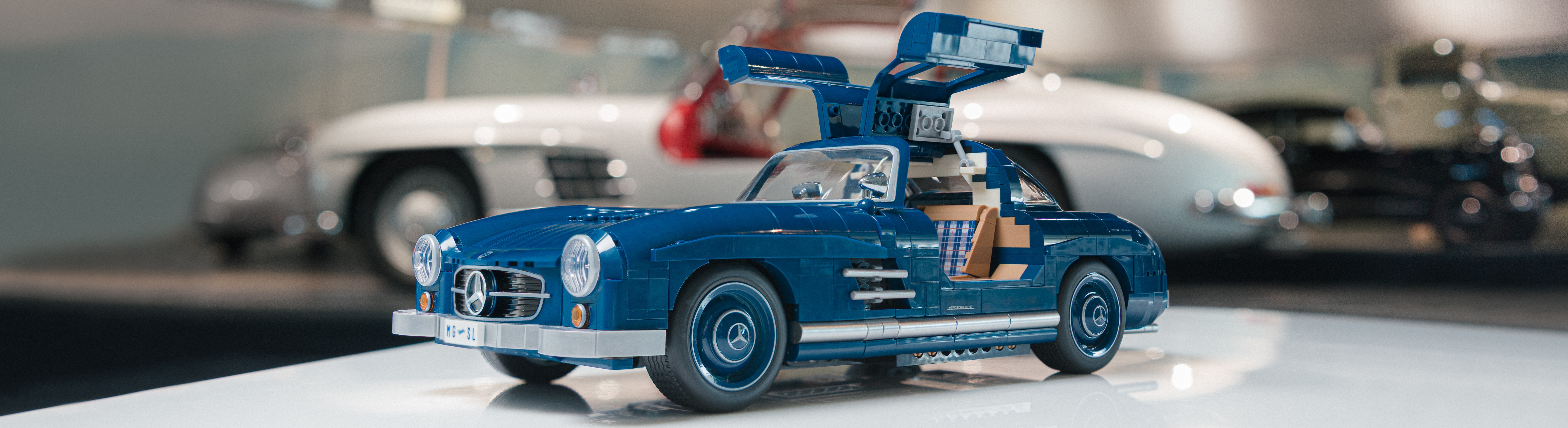 Bauen Sie den ikonischen Flügeltürer im Maßstab 1:12 selbst nach und erleben Sie detailgetreue Eleganz aus 1600 Klemmbausteinen.