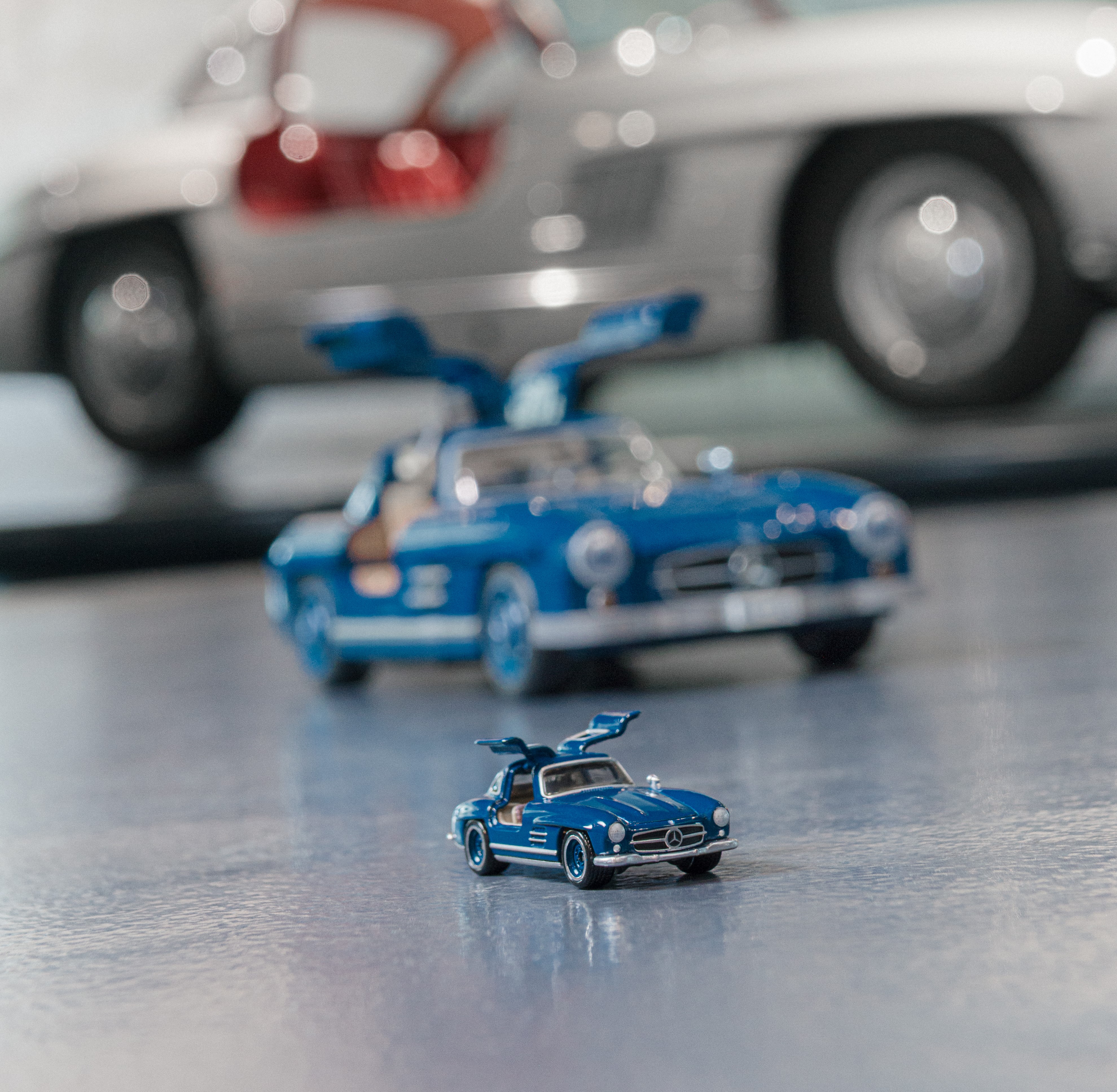 Flügeltüren, Ersatzreifen und ein echtes Mercedes-Benz Emblem sorgen für maximale Authentizität. Erleben Sie den legendären Mercedes-Benz 300 SL in allen Details.